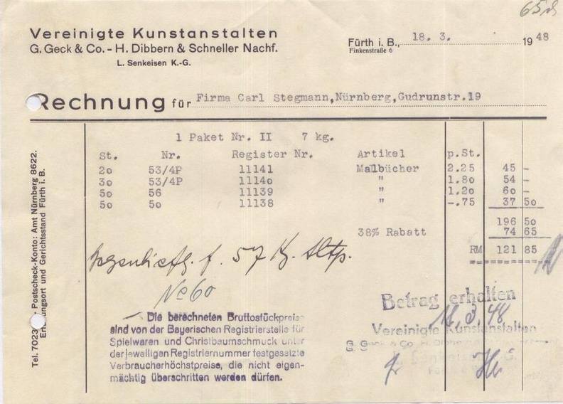 Firmenrechnungen und Schreiben aus Fürth in Bayern